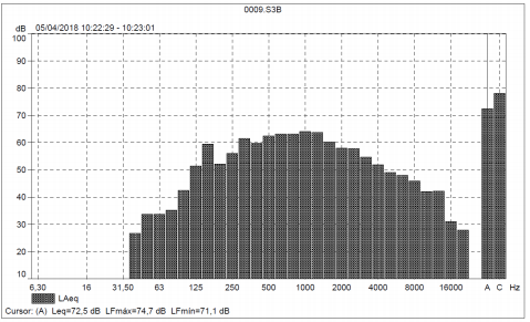 - La nueva medida en el punto M1 de decibelios totales en pleno funcionamiento fue de 77,07, con lo que se consiguió una reducción global de 10dB(A) ± 3dB.